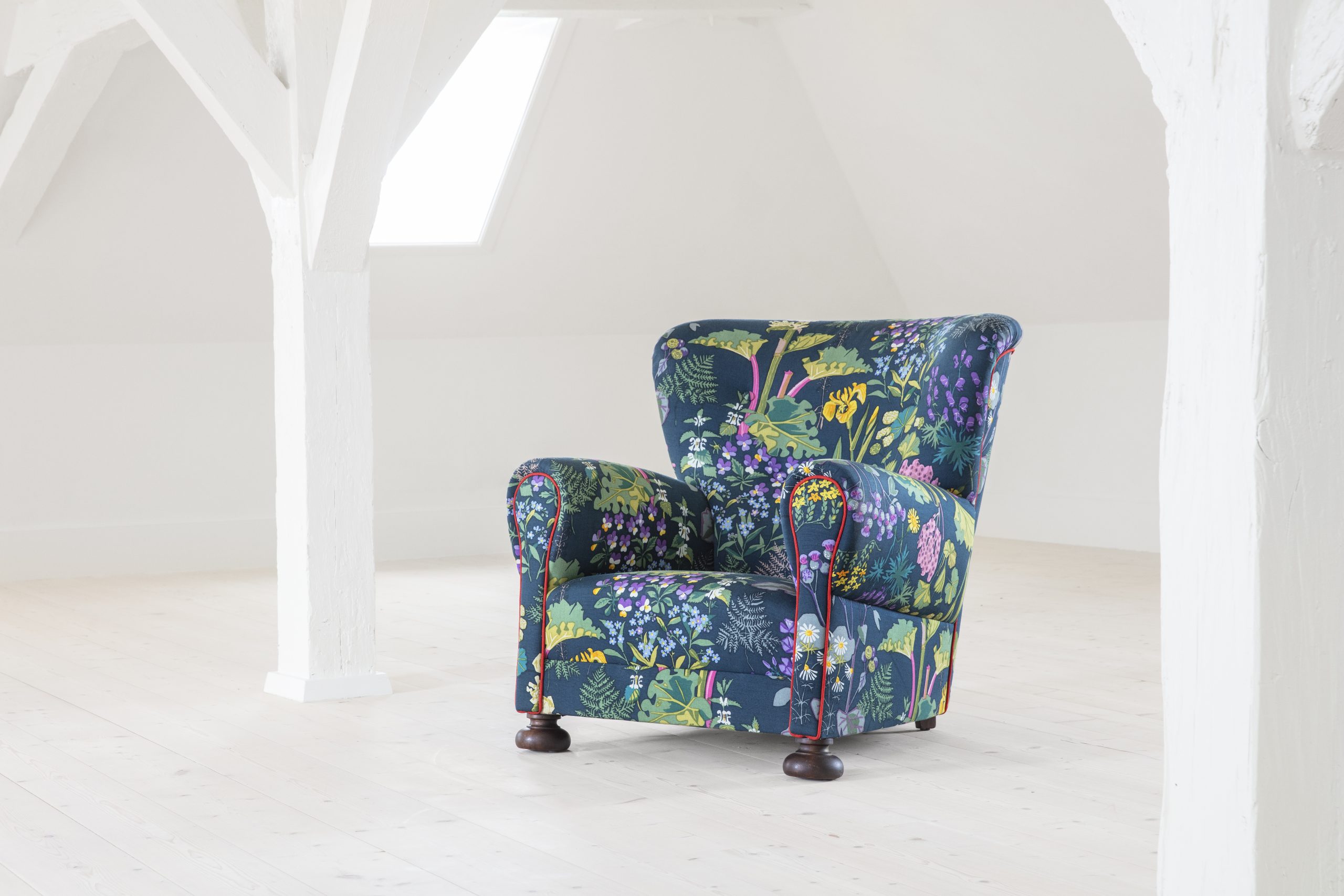 Chair with new upholstery and redressed in print by Gocken Jobs.