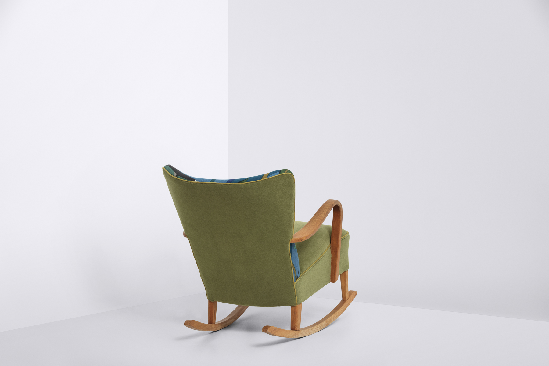 Danish Produced Rocking Chair, 1940s, Green and Floral Upholstery