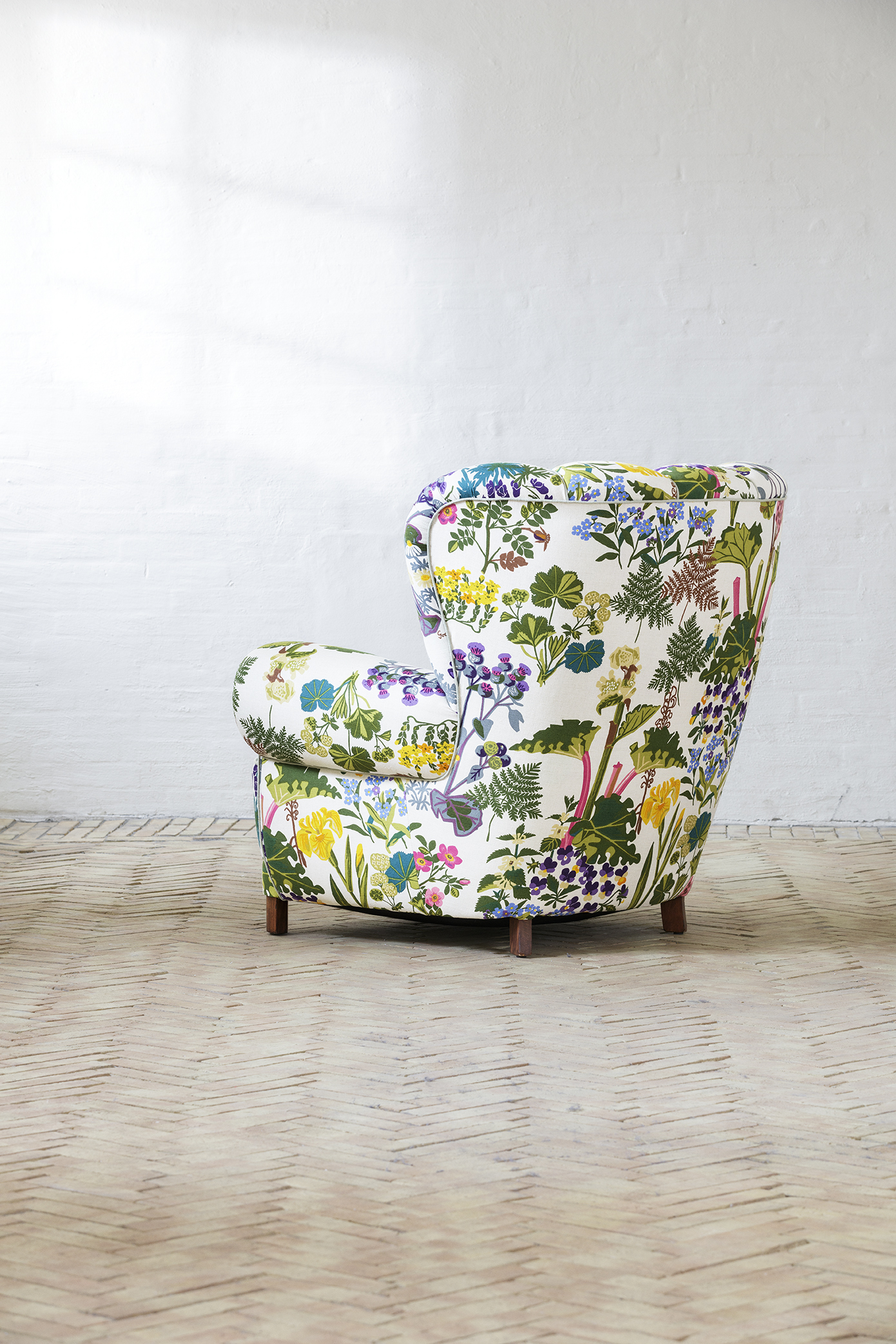 Chair with new upholstery and redressed in print by Gocken Jobs.